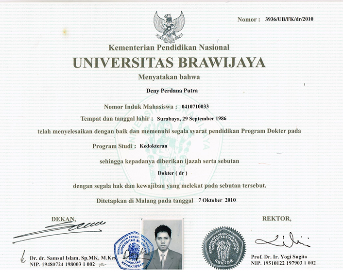 Program Studi Kedokteran (dr) 2004-2010Dan akhirnya petualangan sesungguhnya dimulai pada fase ini, menempuh pendidikan Program Studi Kedokteran tepat pada tahun 2004 di Universitas Brawijaya Malang, yang terletak di Jl. Veteran, Ketawanggede Kota Malang. Selama 6 tahun menjalani pendidikan Program Studi Kedokteran.