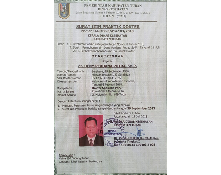 - Nama: dr. Deny Perdana Putra, Sp.P